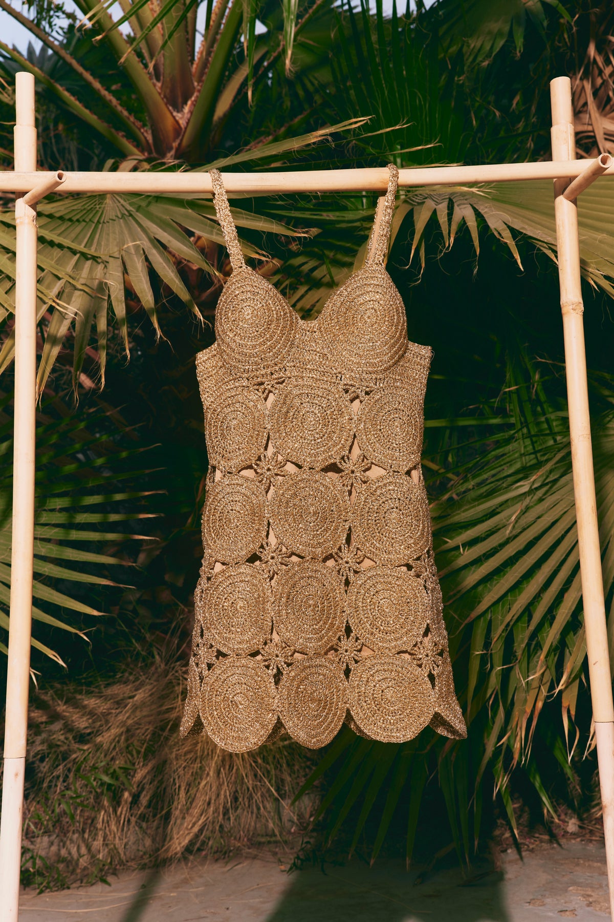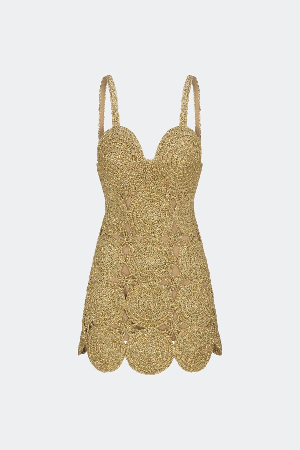 SIMONMILLER Women’s Beep Beep Mini Dress In Star Gold Hand Knit Lurex Crochet Spring Dress | Star Gold