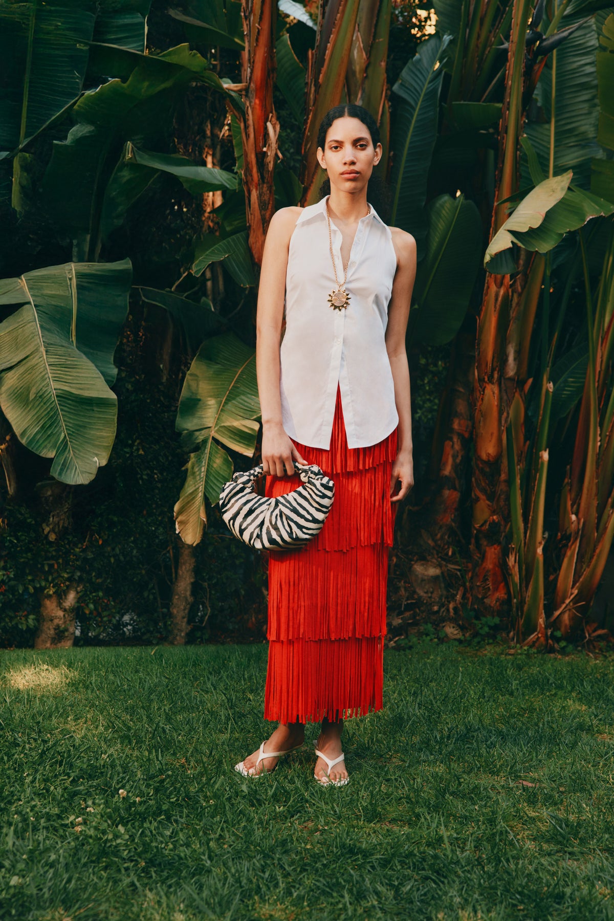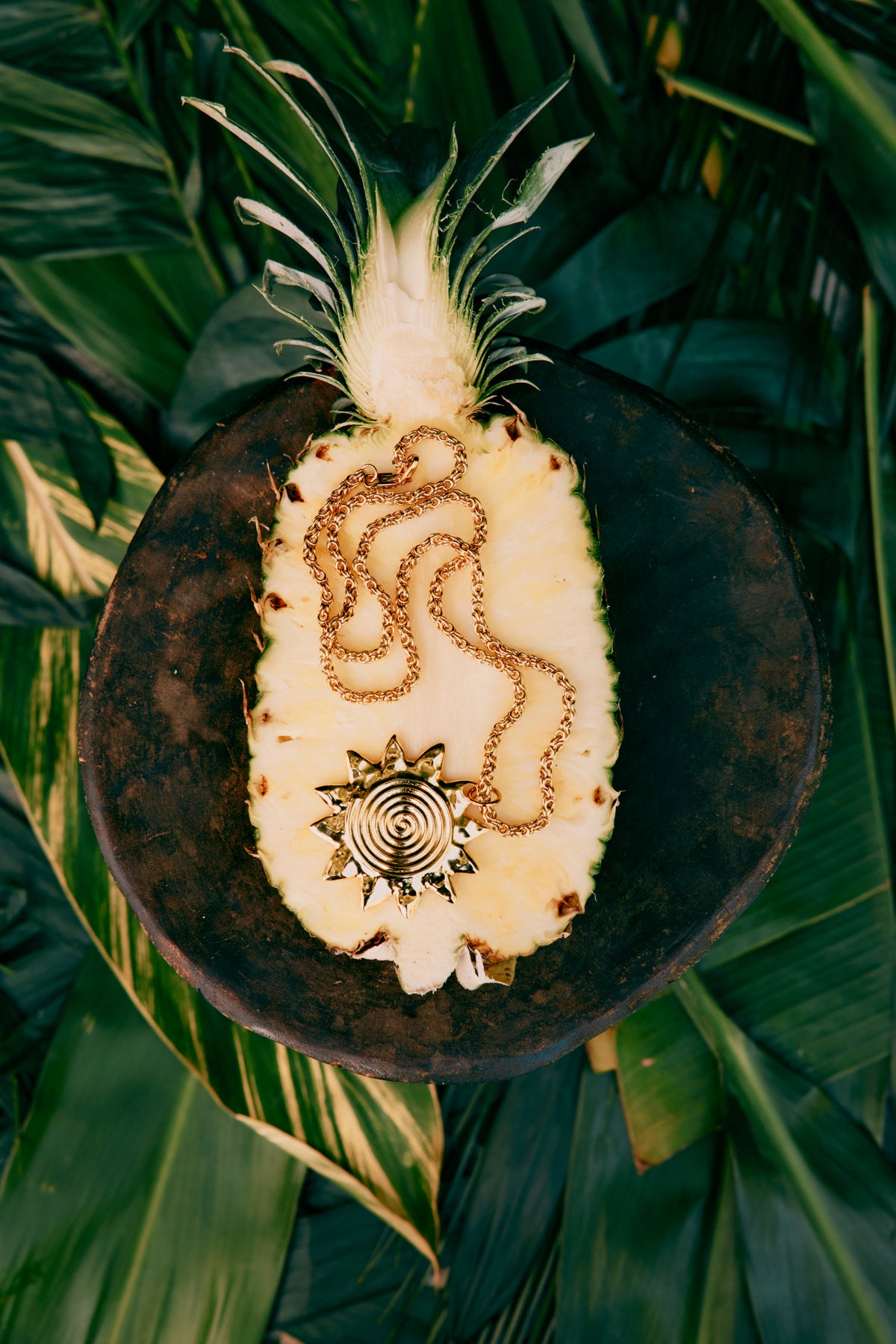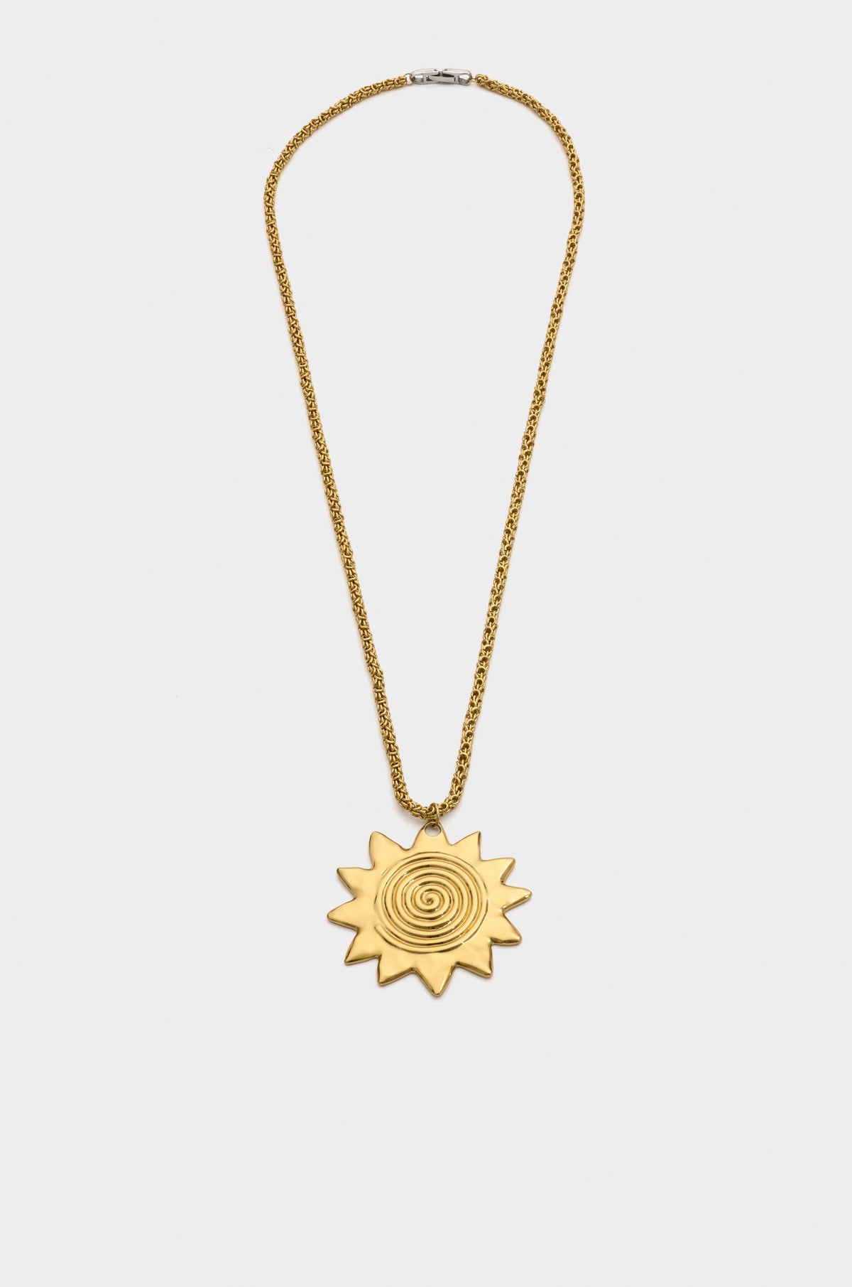Gold-tone metal sun pendant necklace.